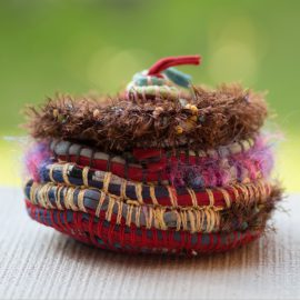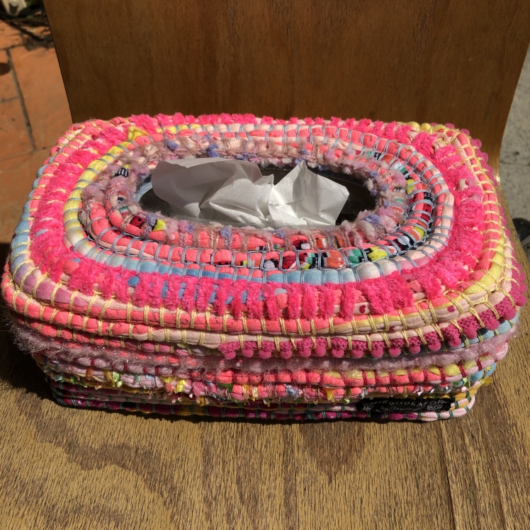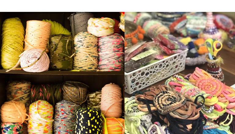 編み方を覚えたら いらなくなったお洋服を切り裂いてかごを作ることもできます。